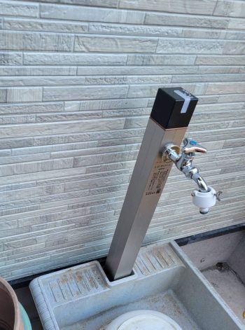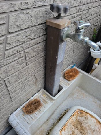 水栓が外壁にぴったり付いていて作業が出来ないので、手前に移設するついでに新品に交換