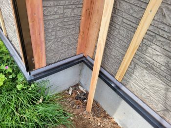 カバー工法の下地工事、土台水切り取付け