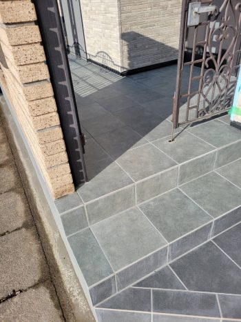 玄関ポーチ、擁壁のタイル張替え