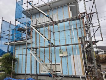 金属サイディングの下地工事を行います。